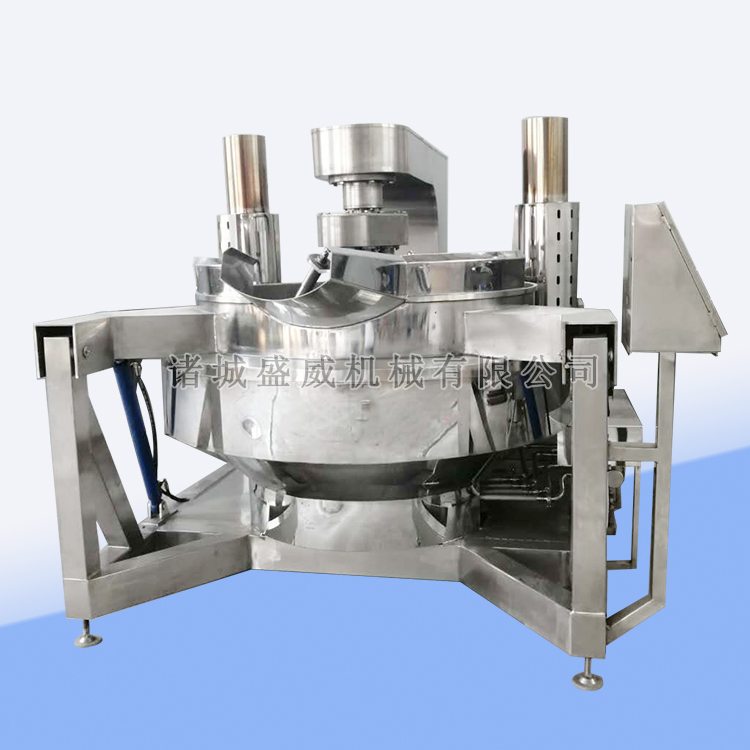 主要由锅体、架体、搅拌系统、加热系统、调速传动装置、搅拌轴、锅体翻转系统等组成,