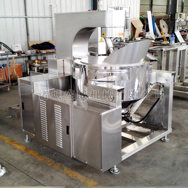 本机吸收借鉴国际先进技术,结合众多食品厂家的专家建议,自主研发的一种新型双向刮底搅拌夹层锅,本锅体搅拌部分采用一次性成型的不锈钢锅体,保证了锅体的平衡光滑,采用蒸汽、液化气、天然气等加热方式,刮边采用弹簧式,刮底采用自重式,使锅体与搅拌叶片紧密接触,使物料搅拌均匀,不粘锅,动力采用日本无机调速器与涡轮、蜗杆,减速机的完美结合,传动部分公转自转的不整数传动比,使锅内搅拌无死角,使用先进的传动与密封结构,使传动部位与锅内洁净、卫生,本机采用液压式翻臂,翻锅出料,省力、省时、省工、不失为性能优良的生产设备。