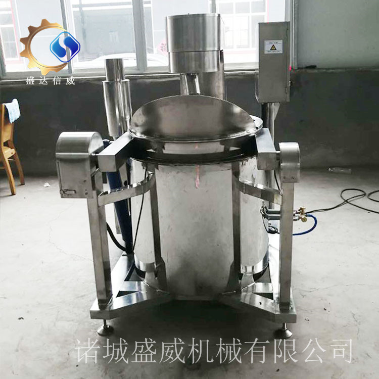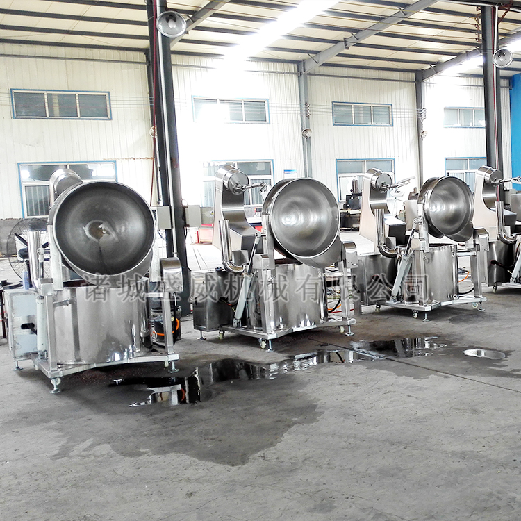 本机吸收借鉴国际先进技术,结合众多食品厂家的专家建议,自主研发的一种新型双向刮底搅拌夹层锅,本锅体搅拌部分采用一次性成型的不锈钢锅体,保证了锅体的平衡光滑,采用蒸汽、液化气、天然气等加热方式,刮边采用弹簧式,刮底采用自重式,使锅体与搅拌叶片紧密接触,使物料搅拌均匀,不粘锅,动力采用日本无机调速器与涡轮、蜗杆,减速机的完美结合,传动部分公转自转的不整数传动比,使锅内搅拌无死角,使用先进的传动与密封结构,使传动部位与锅内洁净、卫生,本机采用液压式翻臂,翻锅出料,省力、省时、省工、不失为性能优良的生产设备。