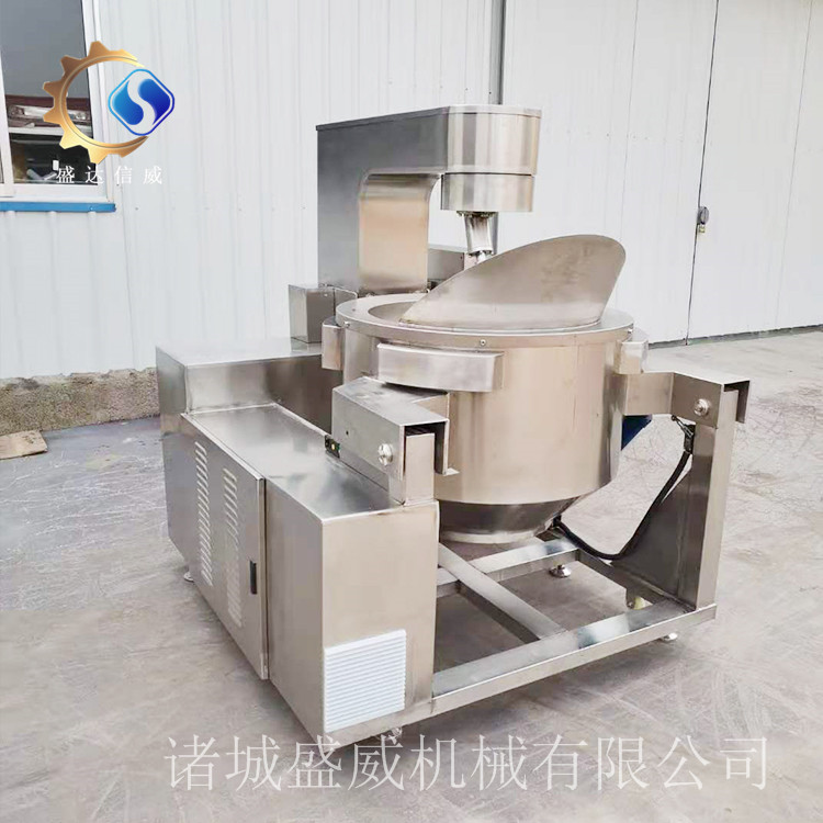 本机吸收借鉴国际先进技术,结合众多食品厂家的专家建议,自主研发的一种新型双向刮底搅拌夹层锅,本锅体搅拌部分采用一次性成型的不锈钢锅体,保证了锅体的平衡光滑,采用蒸汽、液化气、天然气等加热方式,刮边采用弹簧式,刮底采用自重式,使锅体与搅拌叶片紧密接触,使物料搅拌均匀,不粘锅,动力采用日本无机调速器与涡轮、蜗杆,减速机的完美结合,传动部分公转自转的不整数传动比,使锅内搅拌无死角,使用先进的传动与密封结构,使传动部位与锅内洁净、卫生,本机采用液压式翻臂,翻锅出料,省力、省时、省工、不失为性能优良的生产设备。