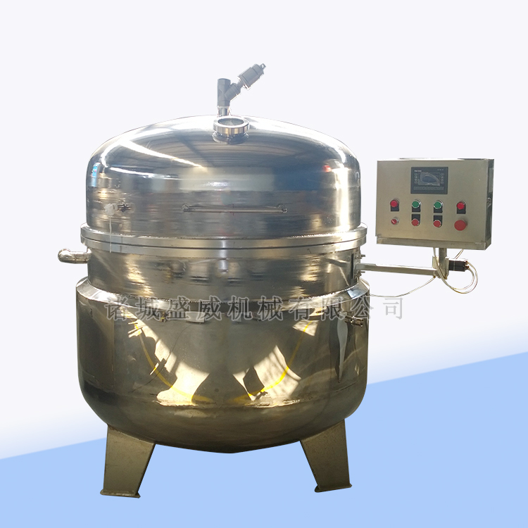 真空浸糖锅又名真空糖渍锅,适用于各种蜜饯、水果浸糖、酱菜迅速腌渍。如:红薯、大枣、蜜枣、山楂、蓝莓、草莓、苹果、梨、桃子等迅速浸糖,酱菜及休闲食品调料迅速腌渍入味,根据产量可配套抽空罐规格,罐体可以加装加温夹层,可安装温度自控系统;可配套气动开盖装置。真空浸糖锅以有压力的蒸汽为热源,真空浸糖锅具有受热面积大、热效率高、加热均匀、沸腾时间短、加热温度容易控制、方便清洗、真空度高等特点。