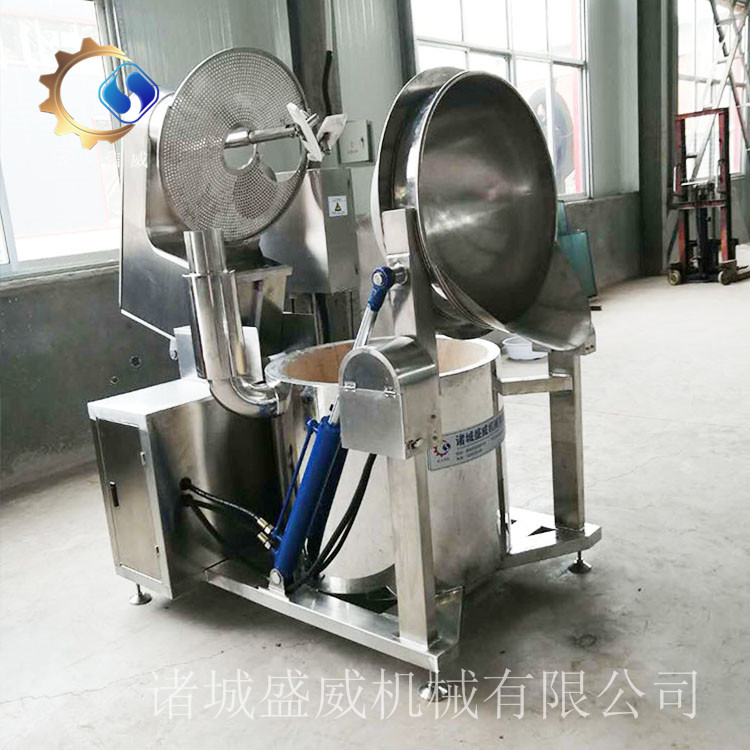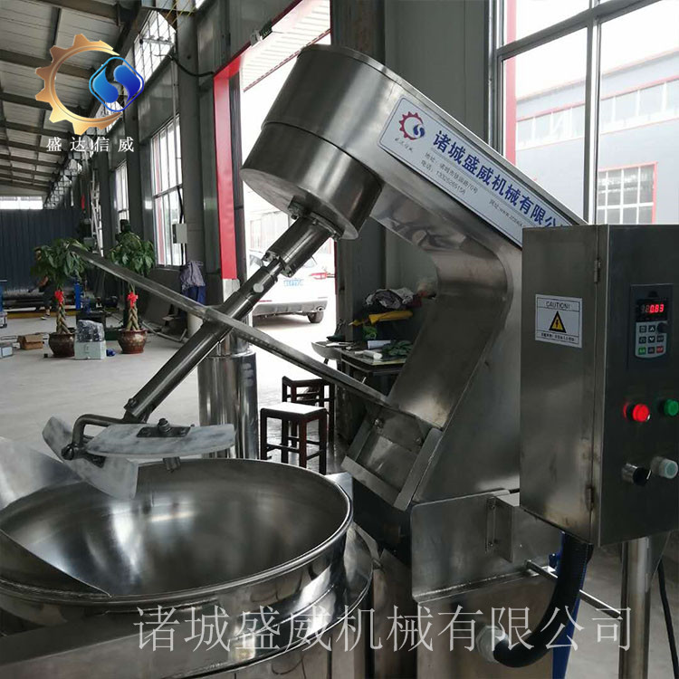 本机吸收借鉴国际先进技术,结合众多食品厂家的专家建议,自主研发的一种新型双向刮底搅拌夹层锅,本锅体搅拌部分采用一次性成型的不锈钢锅体,保证了锅体的平衡光滑,采用蒸汽、液化气、天然气等加热方式,刮边采用弹簧式,刮底采用自重式,使锅体与搅拌叶片紧密接触,使物料搅拌均匀,不粘锅,动力采用日本无机调速器与涡轮、蜗杆,减速机的完美结合,传动部分公转自转的不整数传动比,使锅内搅拌无死角,使用先进的传动与密封结构,使传动部位与锅内洁净、卫生,本机采用液压式翻臂,翻锅出料,省力、省时、省工、不失为性能优良的生产设备。