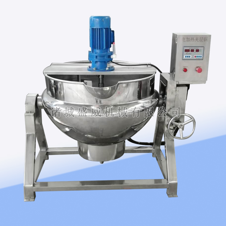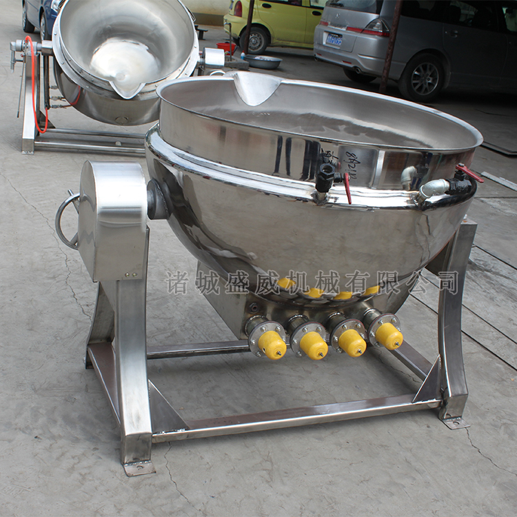 以前物料的炒制熬制工作都是厨师们人工用铲子翻炒熬制的,不仅费时费力还容易造成因翻搅不均匀造成的口感不好、糊锅粘锅等问题。 而尊龙凯时网址机械研制的带搅拌夹层锅正好解决了这一问题,搅拌装置可自动翻转熬制,采用刮底搅拌方式,无死角不糊锅不粘锅,锅体还可自行90°倾斜,方便出料。