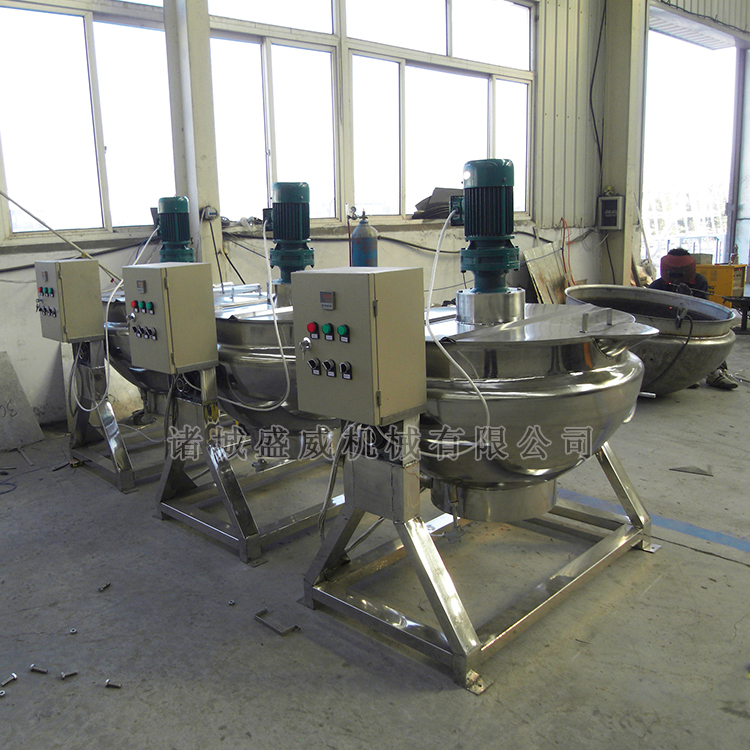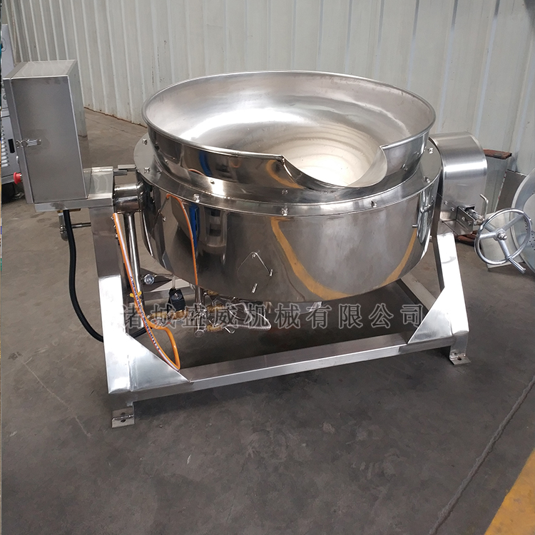 以前物料的炒制熬制工作都是厨师们人工用铲子翻炒熬制的,不仅费时费力还容易造成因翻搅不均匀造成的口感不好、糊锅粘锅等问题。 而尊龙凯时网址机械研制的带搅拌夹层锅正好解决了这一问题,搅拌装置可自动翻转熬制,采用刮底搅拌方式,无死角不糊锅不粘锅,锅体还可自行90°倾斜,方便出料。